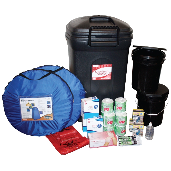 - Contains: Toilets, Privacy Shelters, Sanitation Items, Lighting and more