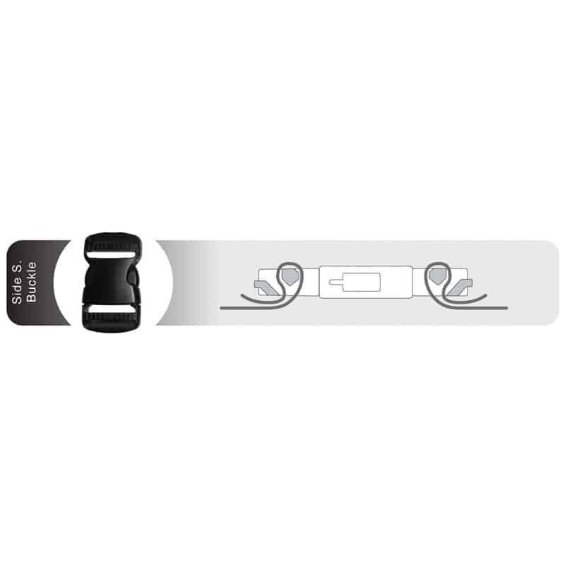 - Allow easy snugging up of strapping at both ends quick release by pressing on sides of buckle
