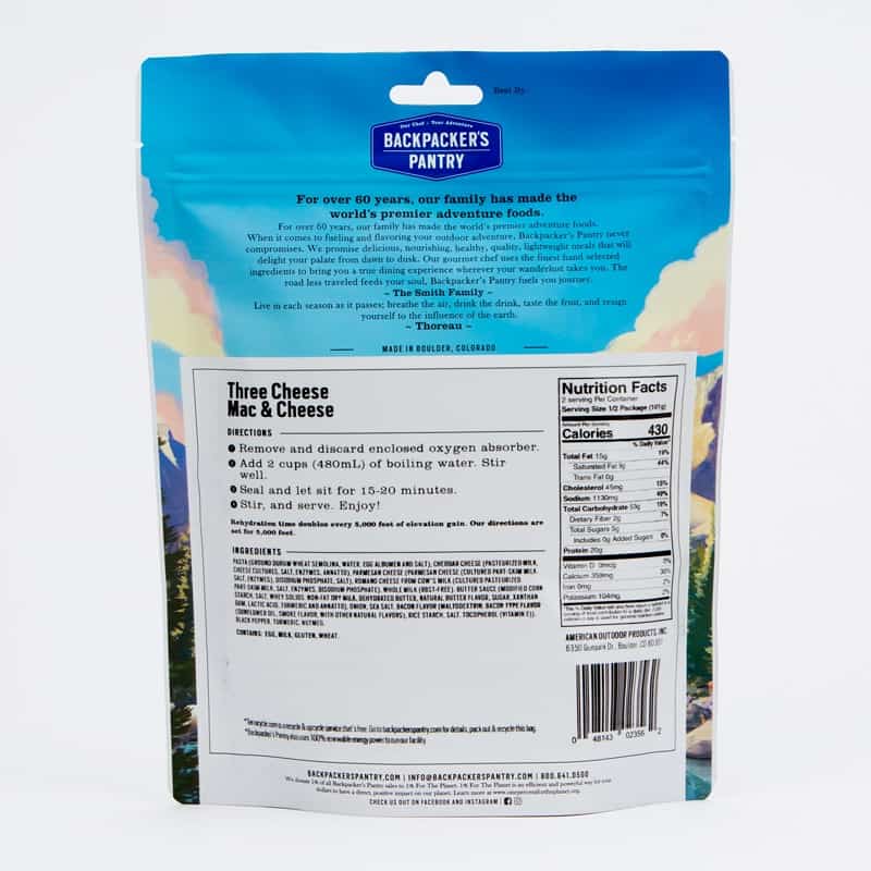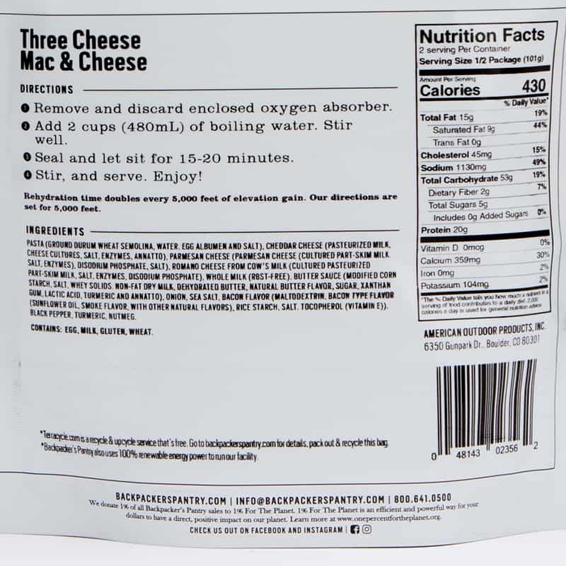 | Content | Made with freeze-dried, imported Belgian egg pasta and a rich, creamy blend of Parmesan, Romano, and Cheddar cheeses. This is the perfect gourmet comfort food.