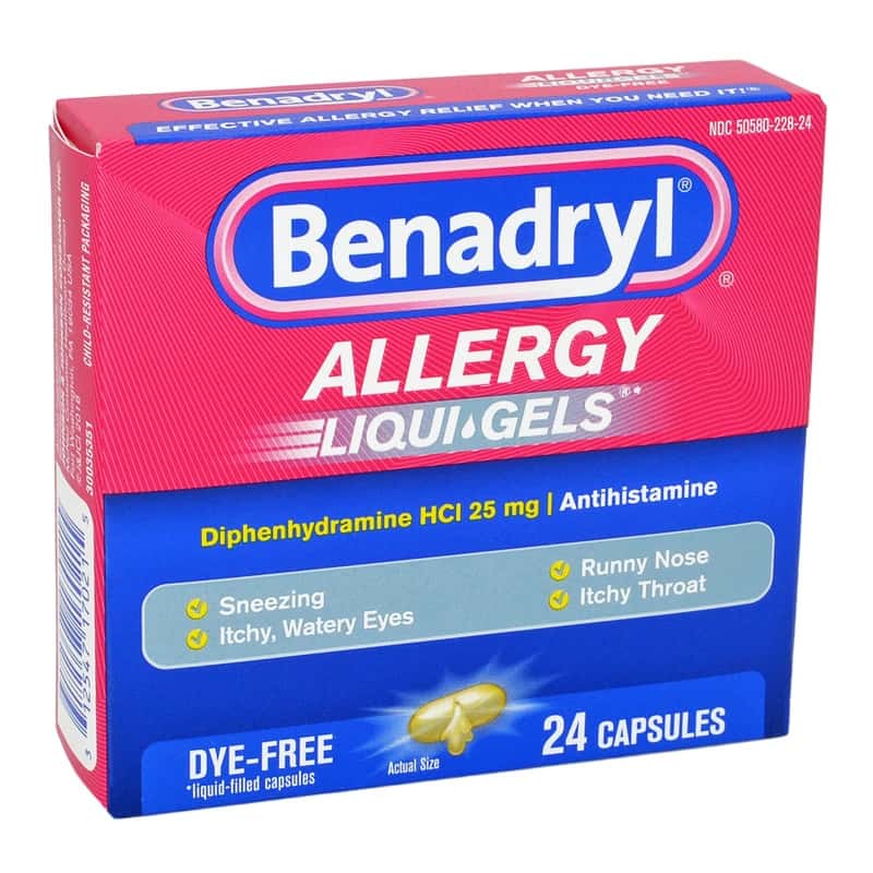 - Active Ingredient: Diphenhydramine HCl 25 mg