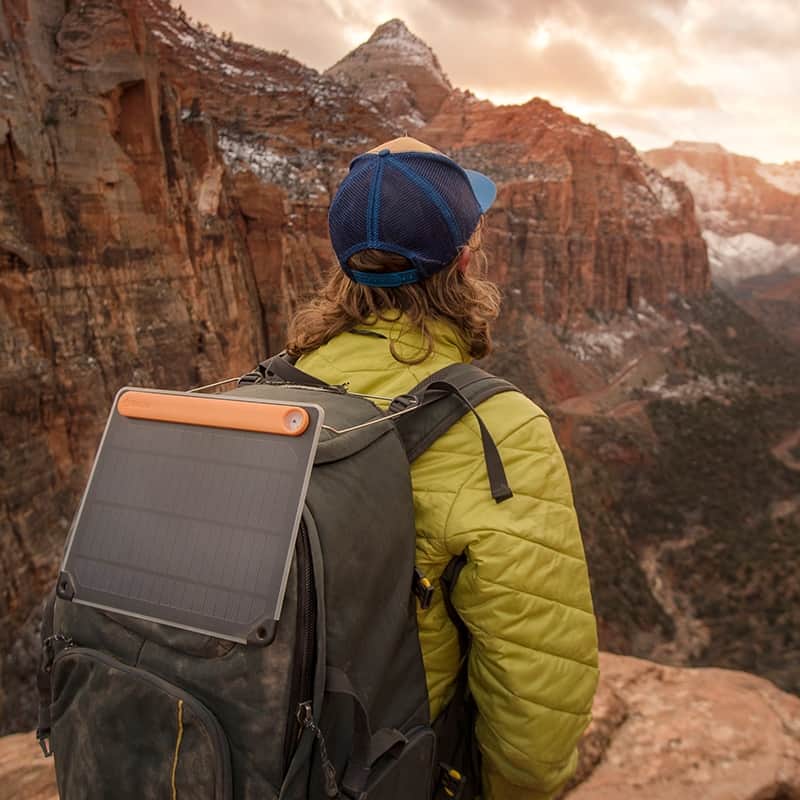 - Attach to a pack for external storage or to capture some watts on a hike