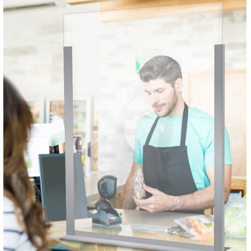 - Countertop sneeze guard kit comes with aluminum frame and 24” w x 36” h x 1/8” acrylic