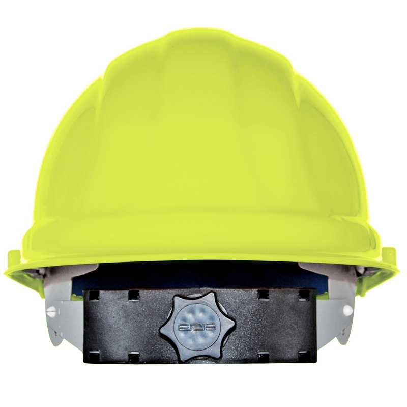 | Molded from high density polyethylene for maximum protection. 6-point woven nylon suspension. Secure-fit mega ratchet features an easy turn knob. Adjusts to over 40 different head sizes.