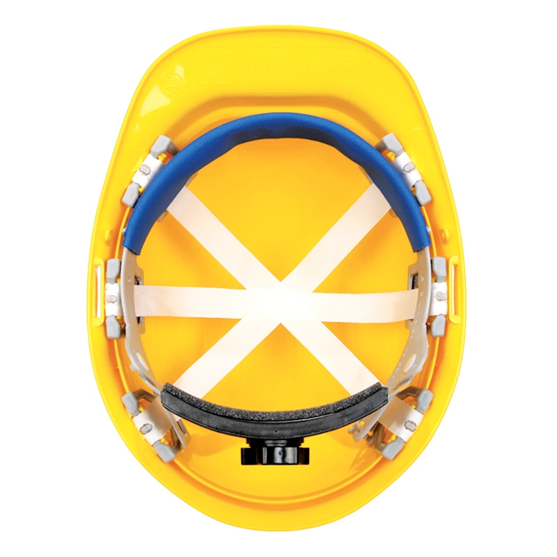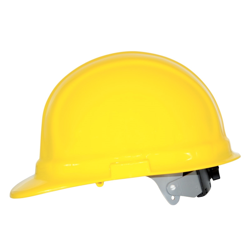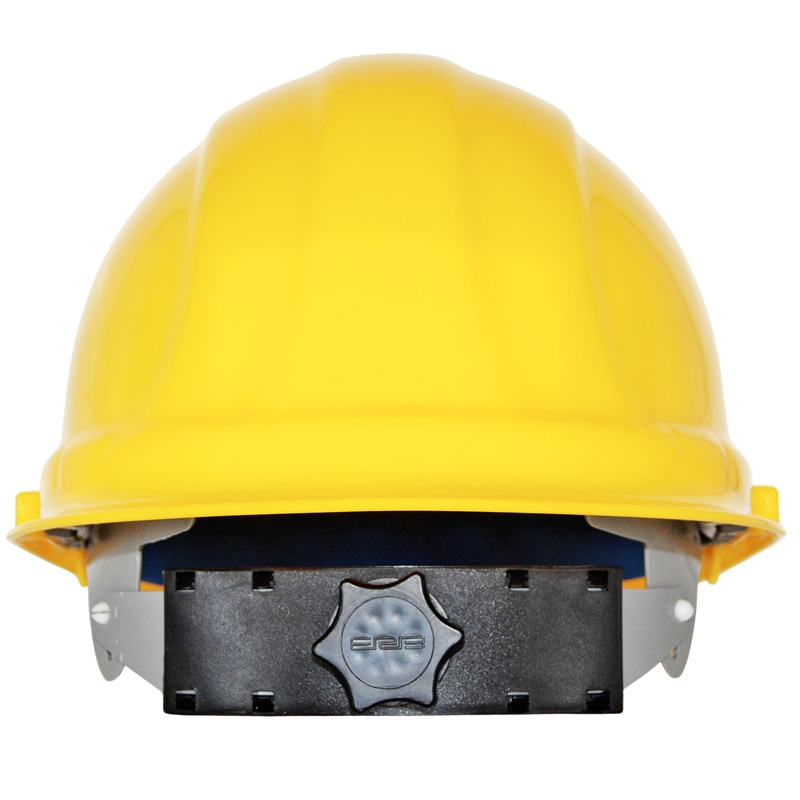 Made in USA | Molded from high density polyethylene for maximum protection. 6-point woven nylon suspension. Secure-fit mega ratchet features an easy turn knob. Adjusts to over 40 different head sizes.