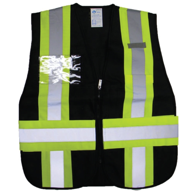 - Black Polyester vest with reflective stripes