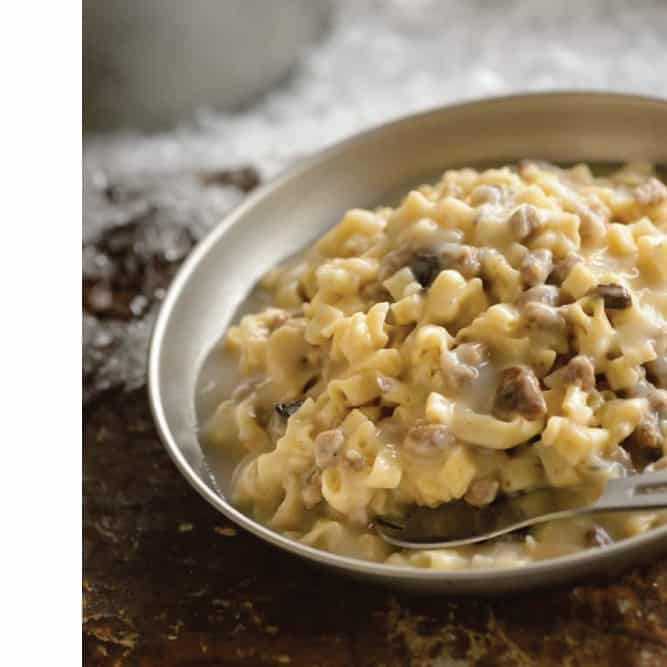 | Content | Tender pieces of beef, tasty onions and mushrooms blended in a savory cream sauce over a bed of egg noodles.