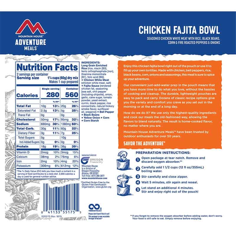 Wish you could take your favorite Tex-Mex cuisine with you on your next excursion? Now you can! Made with real pieces of tender, cooked chicken with just the right amount of spice. Rice, black beans, bell peppers, corn, onions, and seasonings blend together to make this meal all the more satisfying. | The Apricot Millennium bar offers a quick and efficient source of energy, with 400 calories. Stock it in your go-bag, your emergency kit or your backpack while hiking to prepare for the unknown. Tastes like a shortbread cookie with apricot flavor. Millennium bars contain natural flavors, which are made of a lightweight wafer and are Coast Guard approved.
