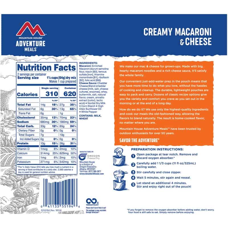 There are few things in this world that are better than macaroni and cheese. But enjoying your favorite comfort food isn't always easy, especially if you find yourself in some faraway land without access to all the fixin's for that perfect bowl of cheesy goodness - that is until Mountain House Creamy Mac and Cheese came along. | The