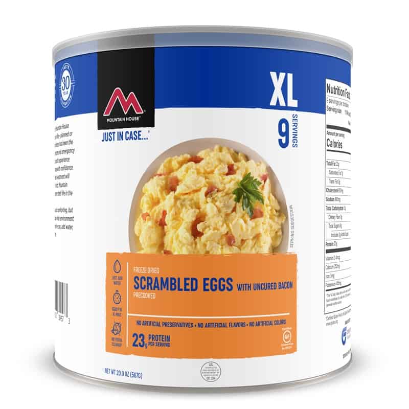 Take all the prep work out of breakfast with our freeze-dried scrambled eggs and bacon. This large can of your favorite breakfast makes a great addition to your emergency food storage supply. Rest assured that no matter what happens, you'll always have a hearty breakfast to power you through your day.