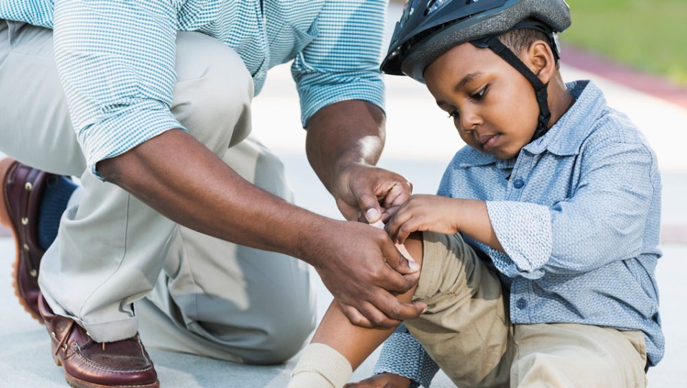 With summer in full swing, it’s the perfect opportunity to get the whole family outdoors. We know that physical activities like riding a bike, playing sports, inline skating, and swimming stimulate your child’s imagination in addition to being great options for exercise. We also know that such activities can also lead to nasty injuries. After all, everyone has at least one story of how they injured themselves during childhood, even doing normal everyday activities. As a parent, the best thing you can do in these situations is to make sure you’re prepared for whatever comes your way.