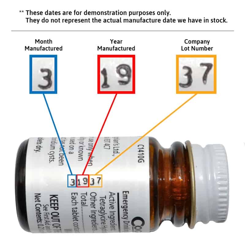 | Content | Emergency Drinking Water Germicidal Tablets and Neutralizer are intended for emergency disinfection of drinking water without the color and taste of iodine. When used as directed, they make most water bacteriologically suitable for drinking.